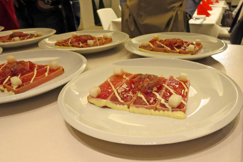 Das Gourmetjahr 2014 bei Grambow & Widmer begann mit einem Meeresthema, dem sogenannten Skrei oder auch Winterkabeljau. Vorab reichte Sternekoch Ronny Siewert ein Thunfisch - Saschimi, als Hauptgang den gebratenen Skrei, dazu Kartoffel-Liebstöckel-Ragout, Gurken-Ingwer-Relish & Schinkenschaum. Das Dessert bildete Nougat & Passionsfrucht mit Vanille-Milcheis, dazu wurde ein Ellermann-Spiegel Grauburgunder 2103 trocken aus der Pfalz in die Weingläser eingegossen.
